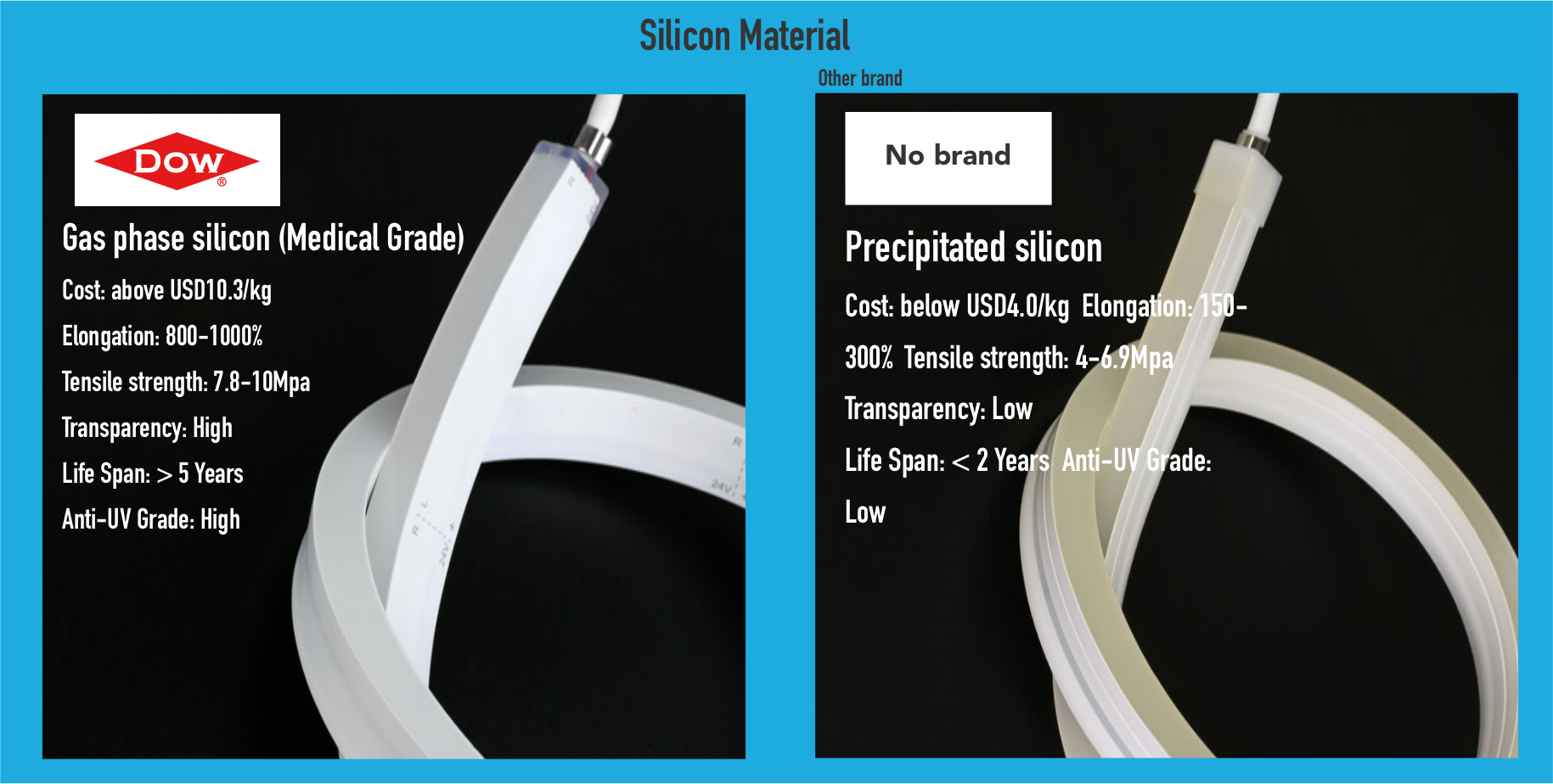 De Pro line Silicon LED linear flex dankt zijn naam aan het hoogwaardige siliconen materiaal waaruit hij is vervaardigd. Dit is niet zomaar siliconen, maar silicium in gasfase van medische kwaliteit. De eigenschappen van dit materiaal zijn ronduit indrukwekkend: