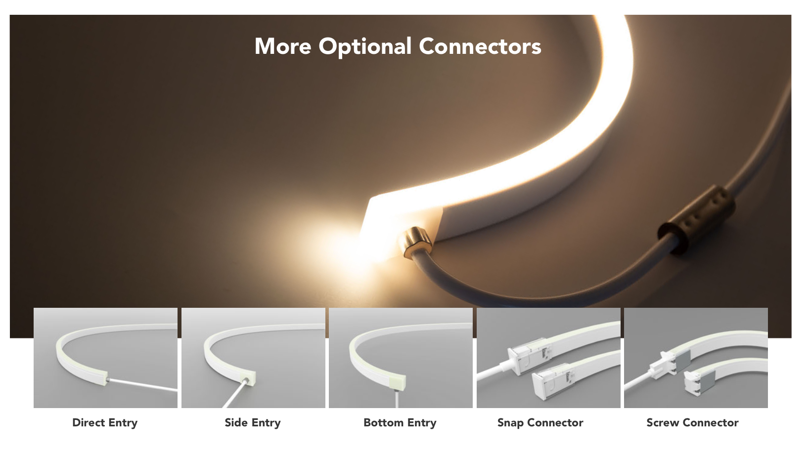 Een van de meest opvallende kenmerken van de Pro line Silicon LED linear flex is de geavanceerde connector. Deze spuitgietconnector is samengesteld door injectie van vloeibaar materiaal met hoge dichtheid. Het resultaat? Een connector met een IP68 beschermingsklasse, wat betekent dat hij volledig stof- en waterdicht is. Dit maakt de strip ideaal voor gebruik in veeleisende omgevingen, zowel binnen als buiten.